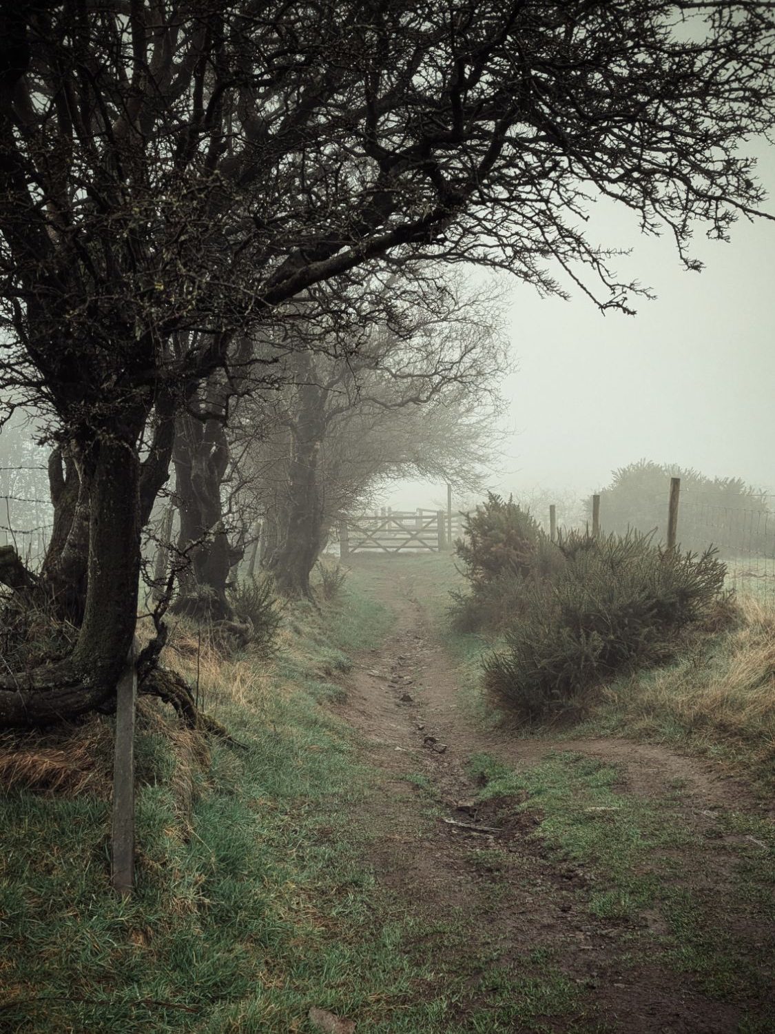 Wet and Misty. Last year I learned to like mist and wet because it created a wonderful environment for photographs of trees and paths. Telling myself that I might find something beautiful, I dressed and made my may out of the house. As soon as I was running, I was fine. It was slippery, uneven, tiring and lovely.