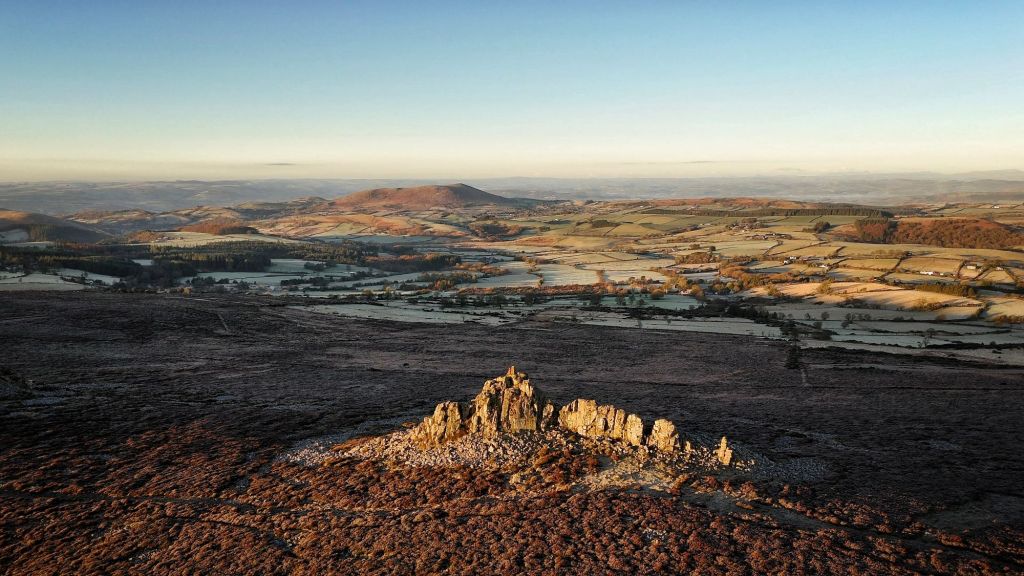 Keep following the ridge until you get to another cairn with an obvious path leading down to your left. Take this path and you will be brought down to the carpark again with lovely views across the valley to the Long Mynd the whole way down.