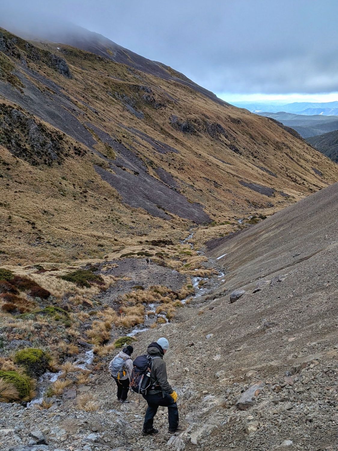 Some of the people in the hut wanted to wait it out until it cleared. Others were convinced that it would get worse and that it was best for us to get down while we still could. The wind was strong and hardly anyone wanted to try the ridge route. The alternate route involved several river crossings and, with the risk of rain, these would get more dangerous.